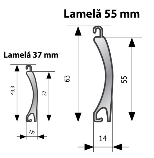 | Lamelle | Kassette Größe | Führungsschiene Größe | Max. Breite |