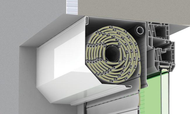 OUTBOX- MCA Vorbaurolläden mit integriertem Insektenschutz, runde Kasten, Band